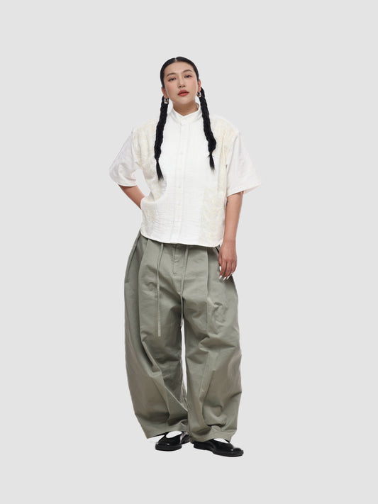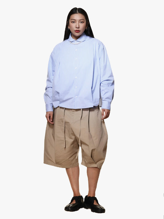 6cRAyon PLEATED WHITE OXFORD SHIRT