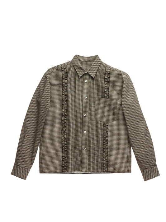 6cRAyon PLEATED BLACK OXFORD SHIRT
