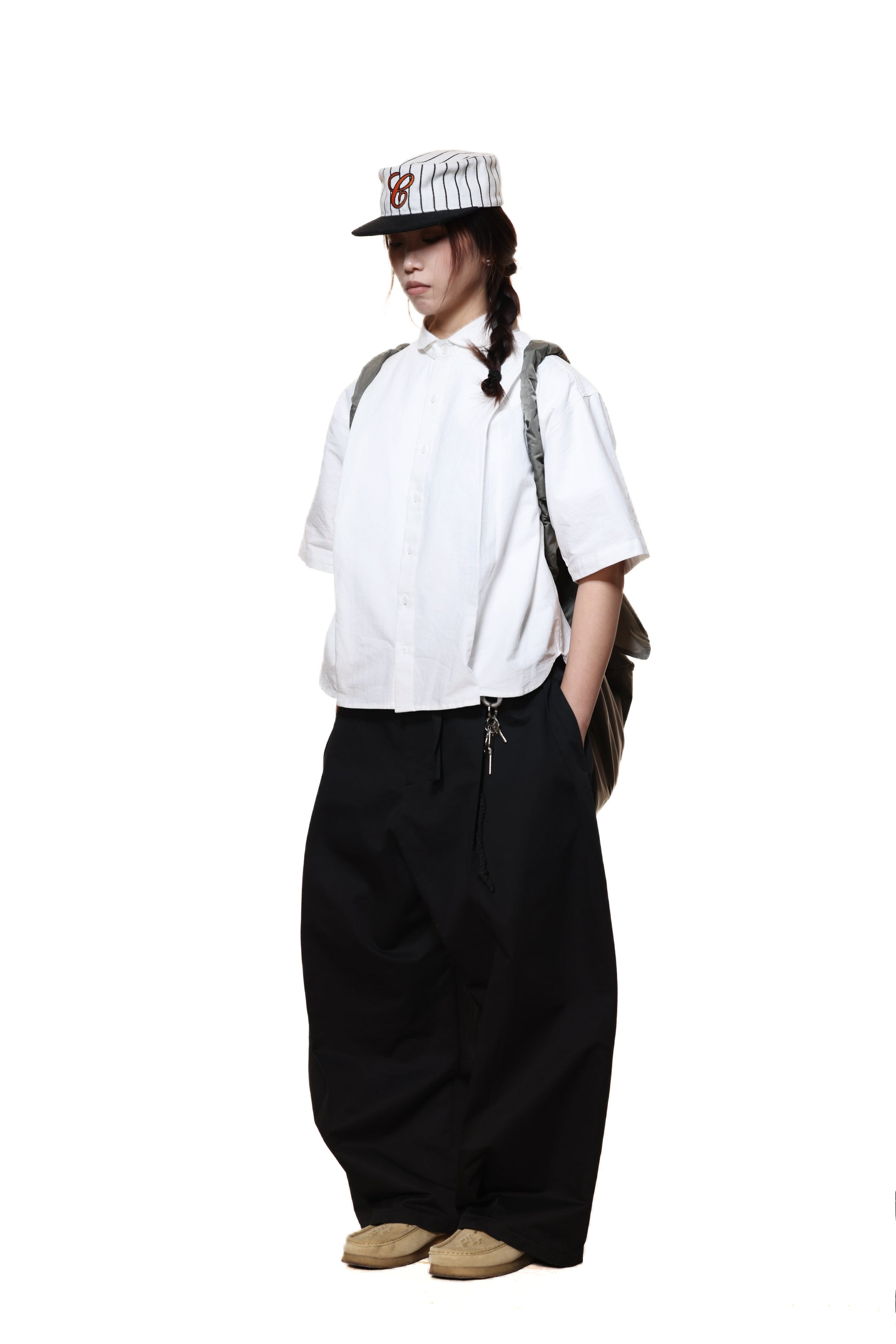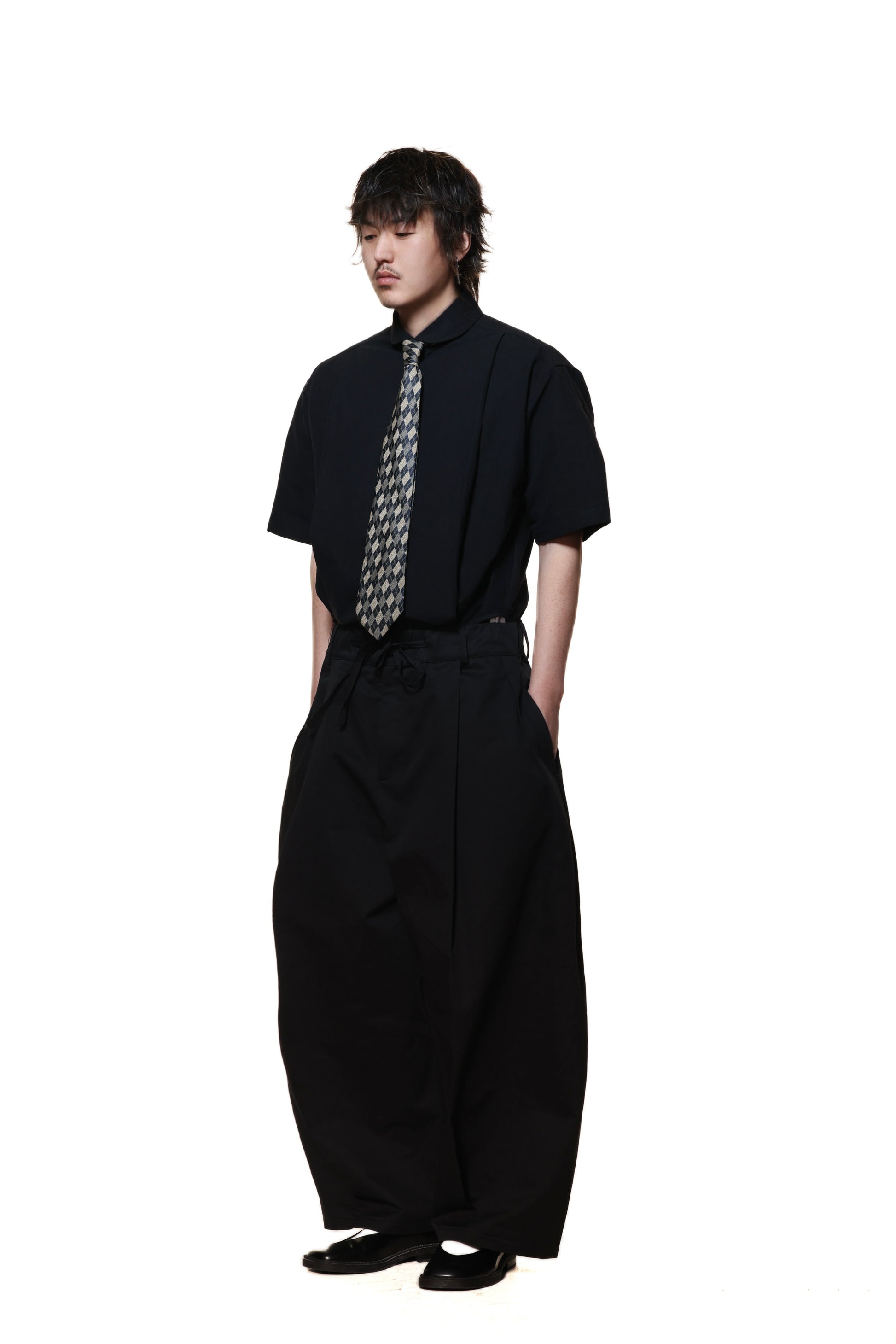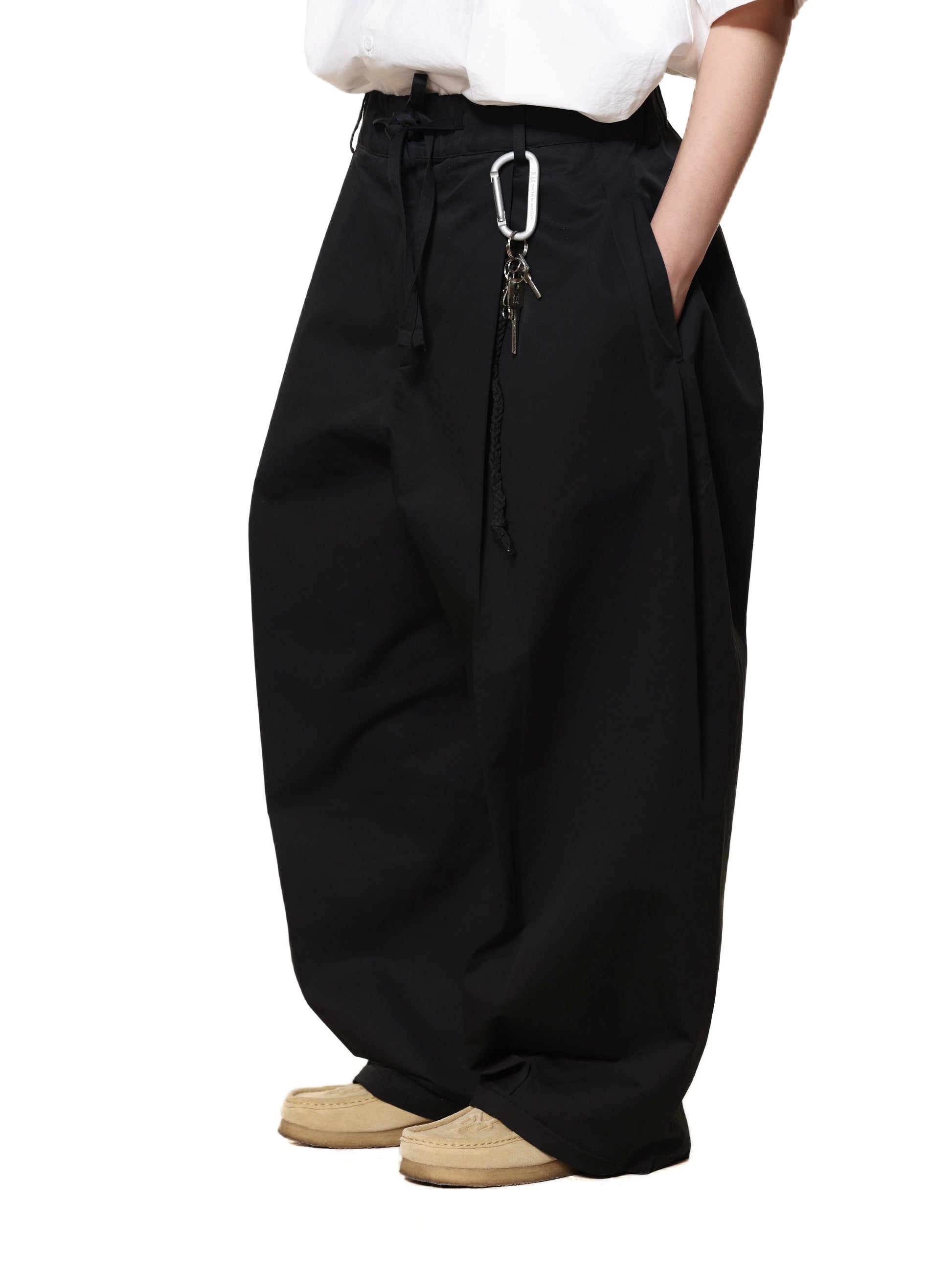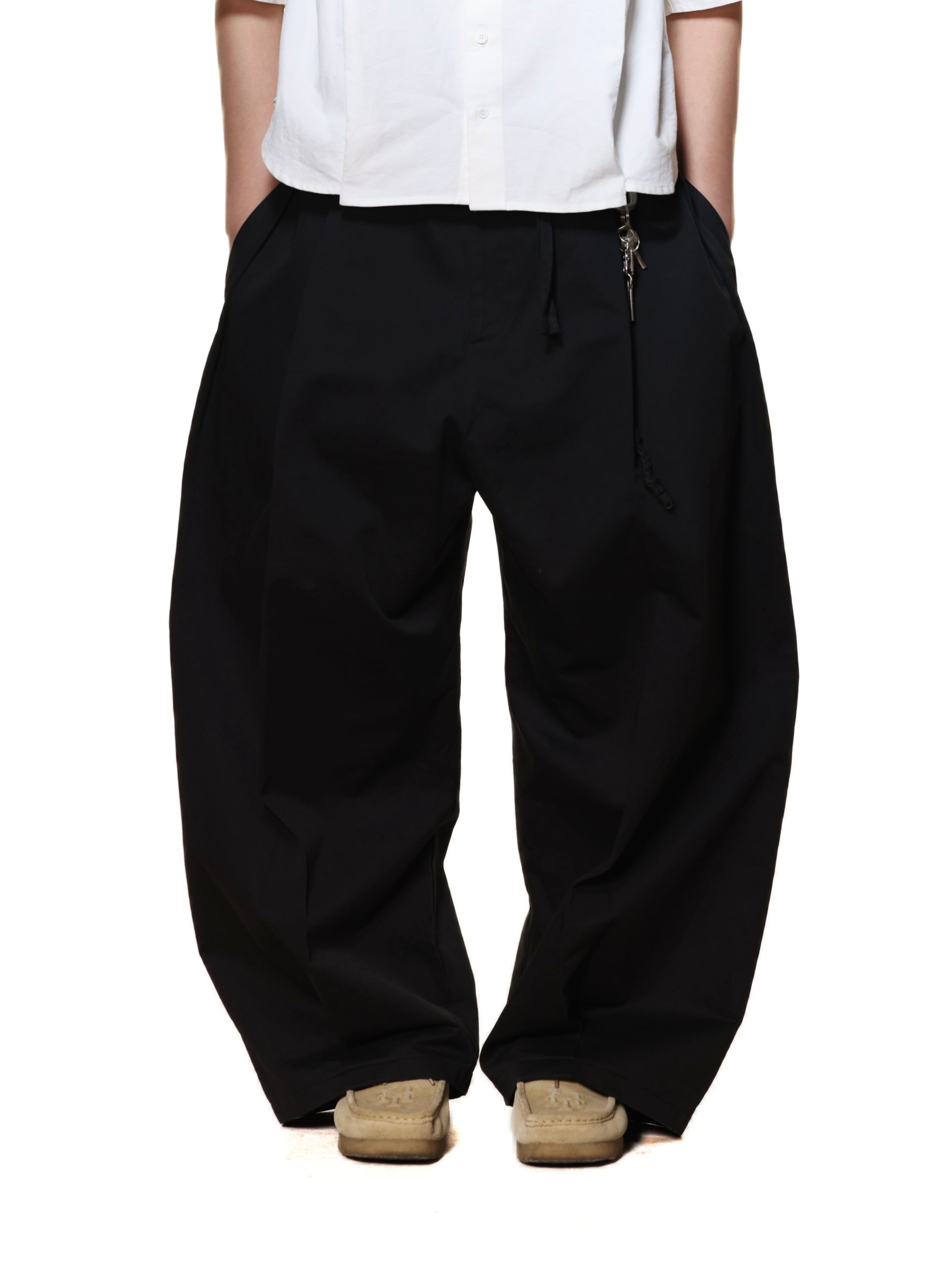 PLEATED LOOSE DRAWSTRING ELASTIC WAIST LONG PANTS