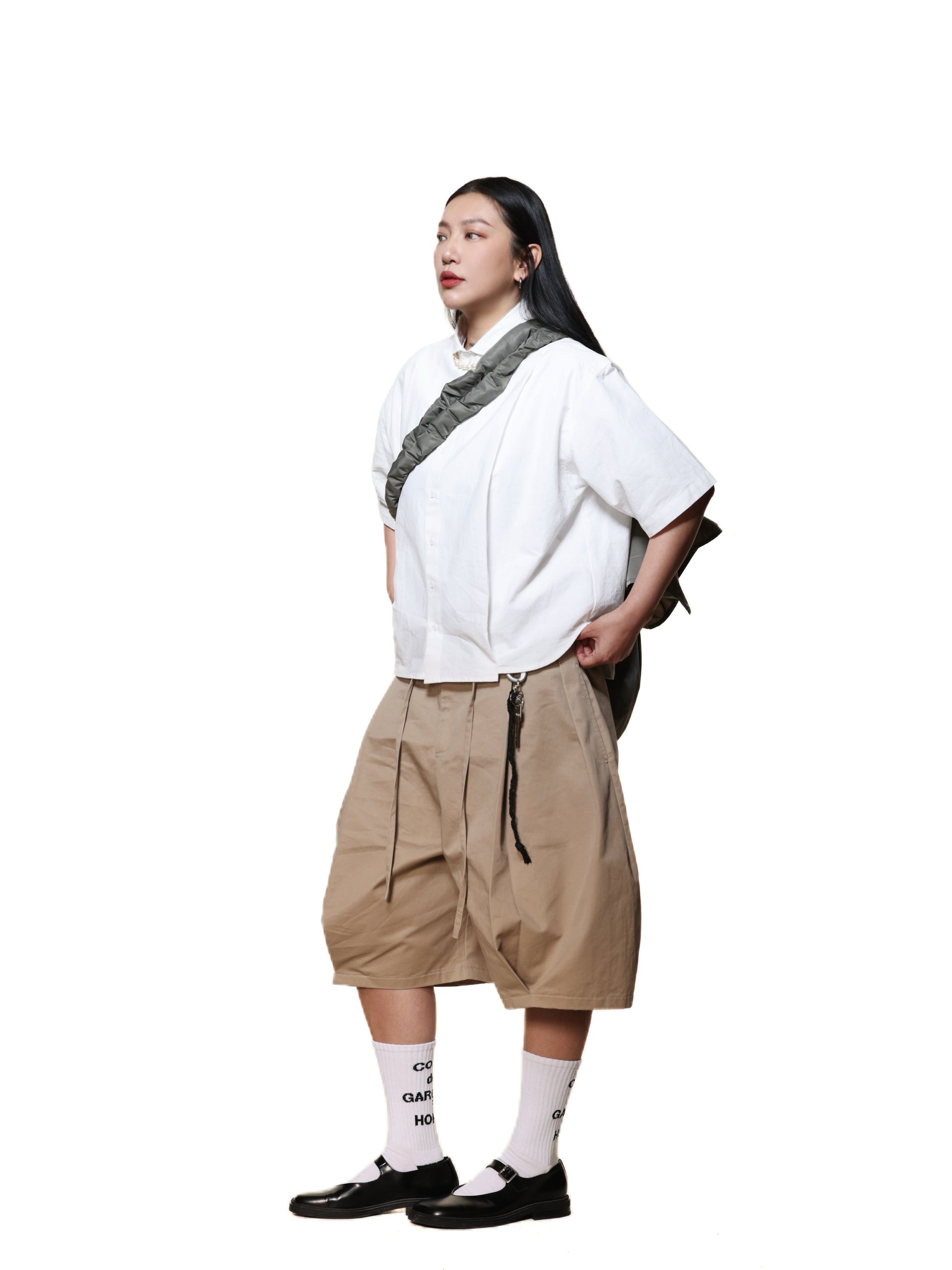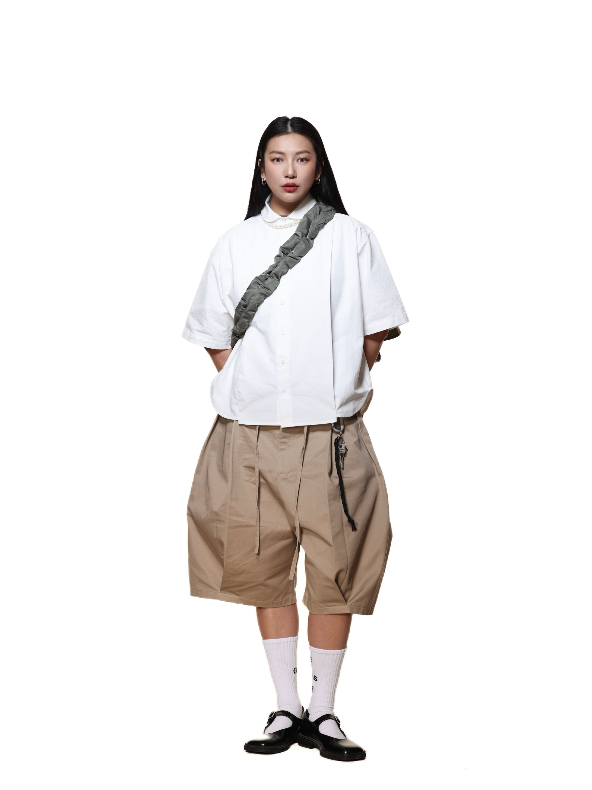 6cRAyon PLEATED WHITE OXFORD SHIRT