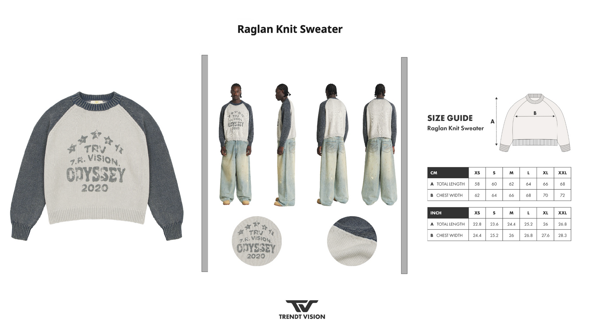 TRENDT VISION 【C.2】Raglan Knit Sweater Blue Grey